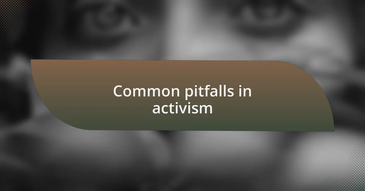 One of the most common pitfalls in activism is underestimating the power of messaging. I once launched a petition advocating for stronger privacy regulations, but I quickly learned that technical jargon alienated potential supporters. Have you ever found yourself speaking a language that others didn’t understand? That experience taught me to simplify my language and focus on the human impact of the issue, making my message more relatable and impactful.