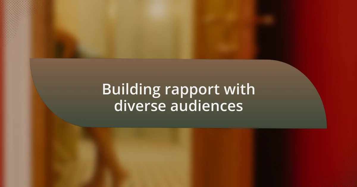 Building rapport with diverse audiences starts with recognizing the unique backgrounds and perspectives each person brings to the table. I recall a workshop where participants ranged from tech-savvy millennials to older generations less familiar with digital privacy. It was essential for me to adjust my language and examples on the fly, ensuring everyone felt included and understood. Have you ever wondered how blending different communication styles can enhance understanding?